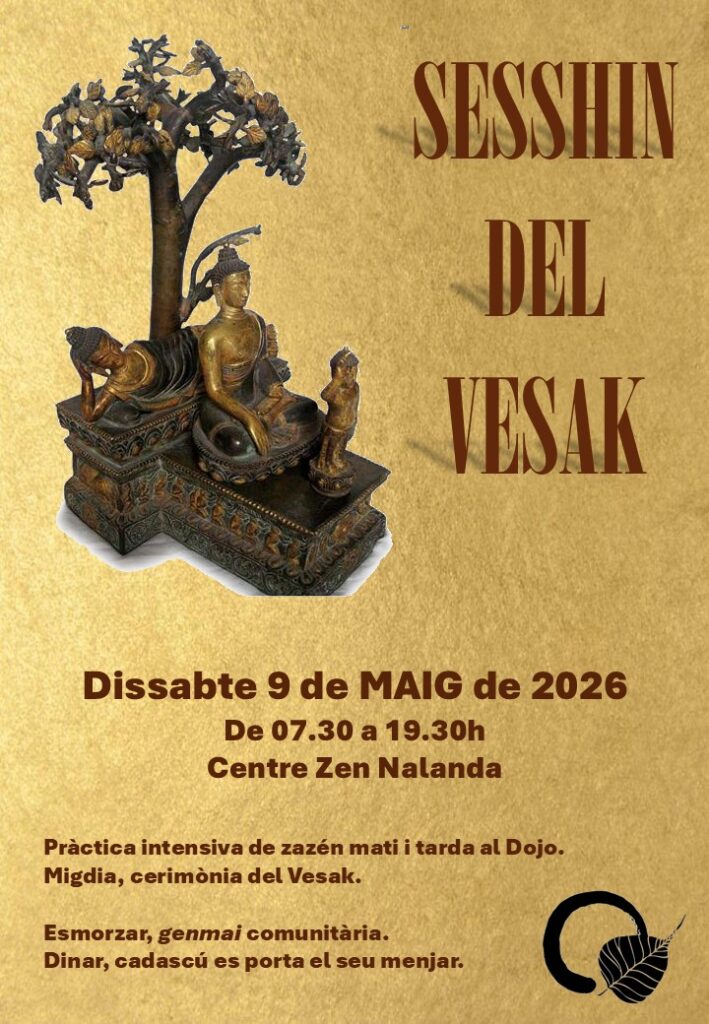 El dissabte dia 9 de maig de 2026, tindrà lloc al Centre Zen Nalanda (carrer Agregació 44) la Sesshin del Vesak, una jornada de pràctica intensiva de zazén.